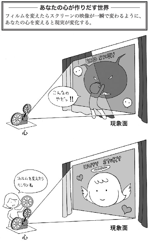 たとえるならば、私たちの目の前に起きるあらゆる現象は、映画館のスクリーンに映し出された映像のようなものなのです。そしてフィルムにあたるのが、私たちの心です。